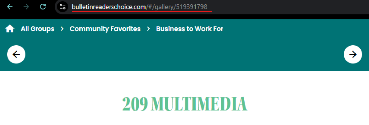 Note: 209 Multimedia owns all copyright, including Readers’ Choice images and other intellectual property rights in materials that are created by 209 Multimedia for our advertisers. Reproduction of those materials without our expressed consent is a violation of the copyright law. All Readers’ Choice images must include the “Vote for Us” verbiage; use of the blank contest logo is prohibited. If you have any questions, please contact our promotions director at promotions@209multimedia.com.